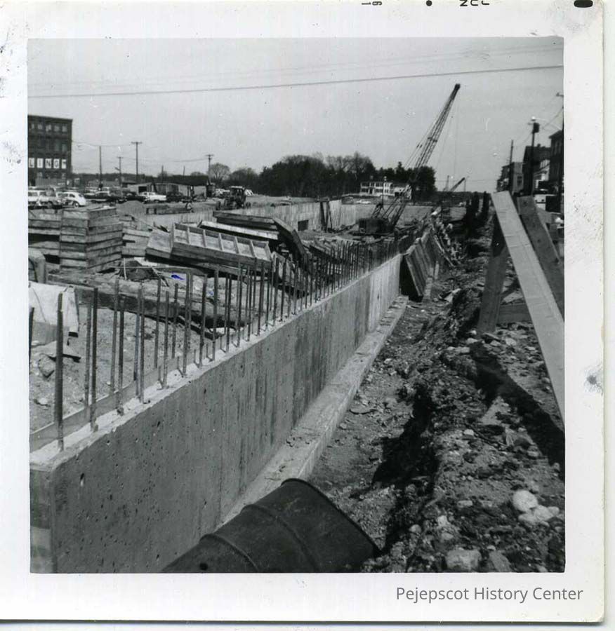 Black & white photograph of construction of Route 1 underpass, Brunswick, 1961.