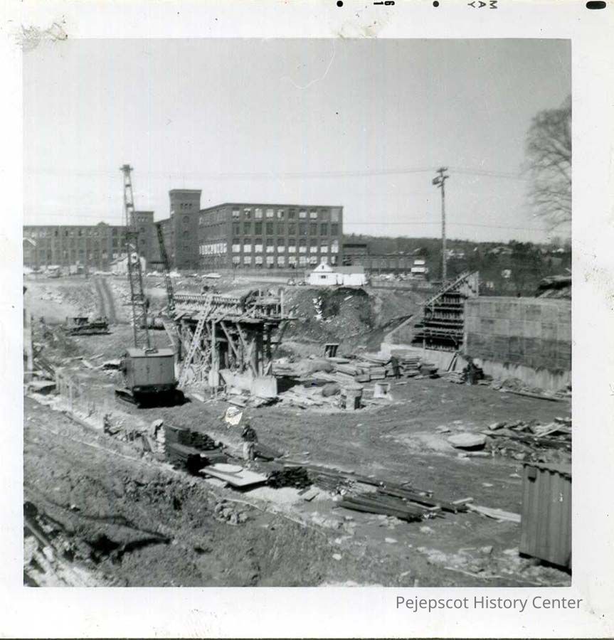 Black & white photograph of construction of Route 1 underpass, Brunswick, 1961.