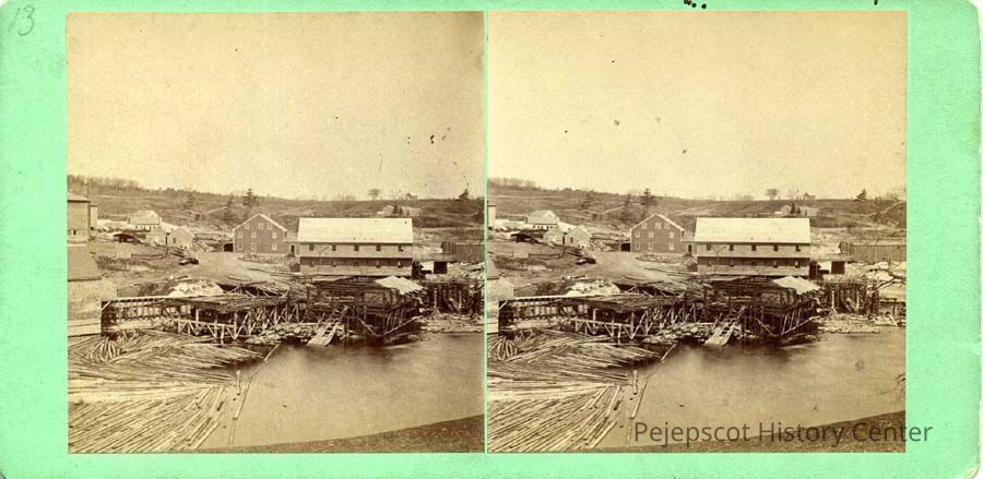 Stereopticon slides, Stereographs, Burnt District, Androscoggin River, Scribner's Mill, Cove Mill, Mills - Brunswick, Photographers - Wm. Pierce, Colby Sawmill
