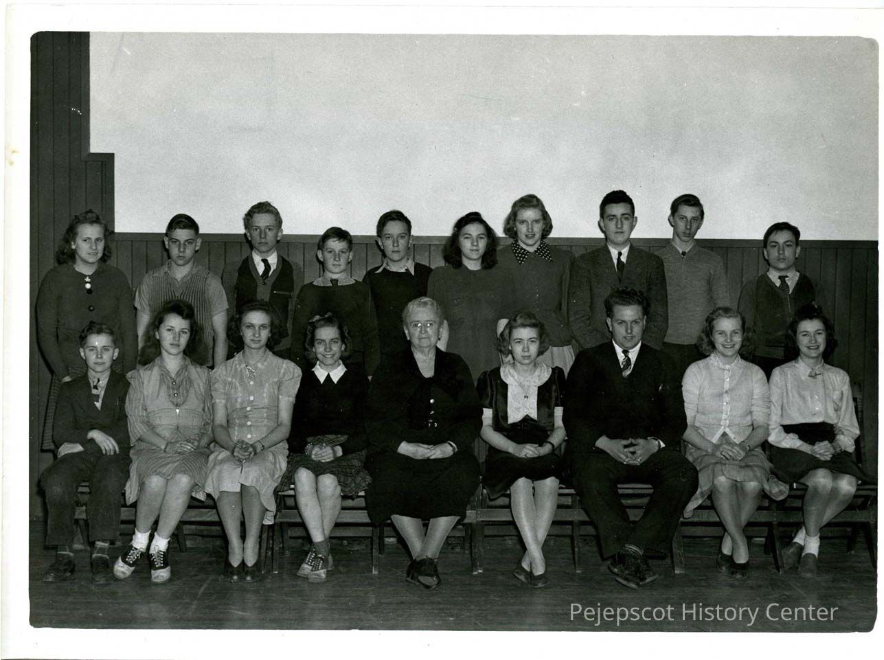 Class of 1941 camera club. Front row; Robert Melhorne, Marie Drapeau, Theresa Paquette, Janice Sylvester, Helen Varney, Laura Knapp, Lawrence Estes, Olga Gustafson, Phylis Olsen (Walker). Back row; Constance Leclerc, George Erswell, Eric Doughty, Norman Bridges, Fenton Lowell, Jewell Hall, Merna Derby, Clifford Little, Charles Payne, Clifton Taylor. UndatedLexicon