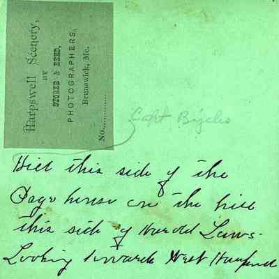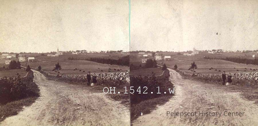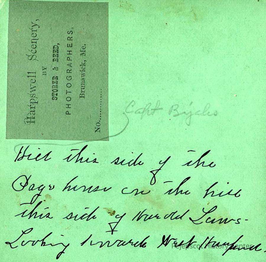 A B/W stereo view of Capt. Bijch's Hill. "Hill this side of the Page House on the hill this side of Harold Laws looking towards West Harpswell. Undated