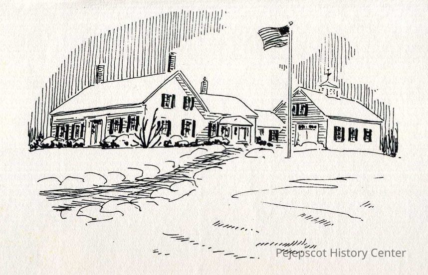 A B/W pen and ink drawing of Capt. Elijah Pinkham's house. 1859