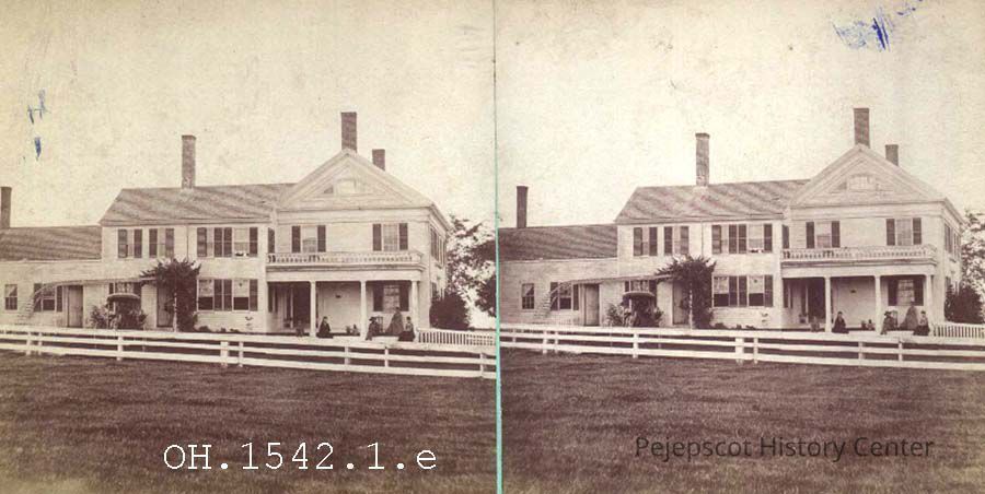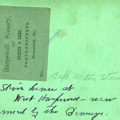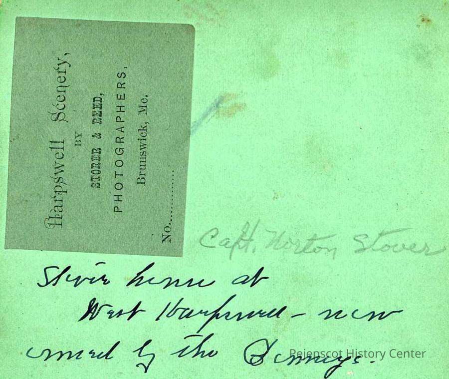 A B/W stereograph view of the Captain Norton Stover house at West Harpswell, ME. Written on the back, "Now owned by the Penneys." Undated