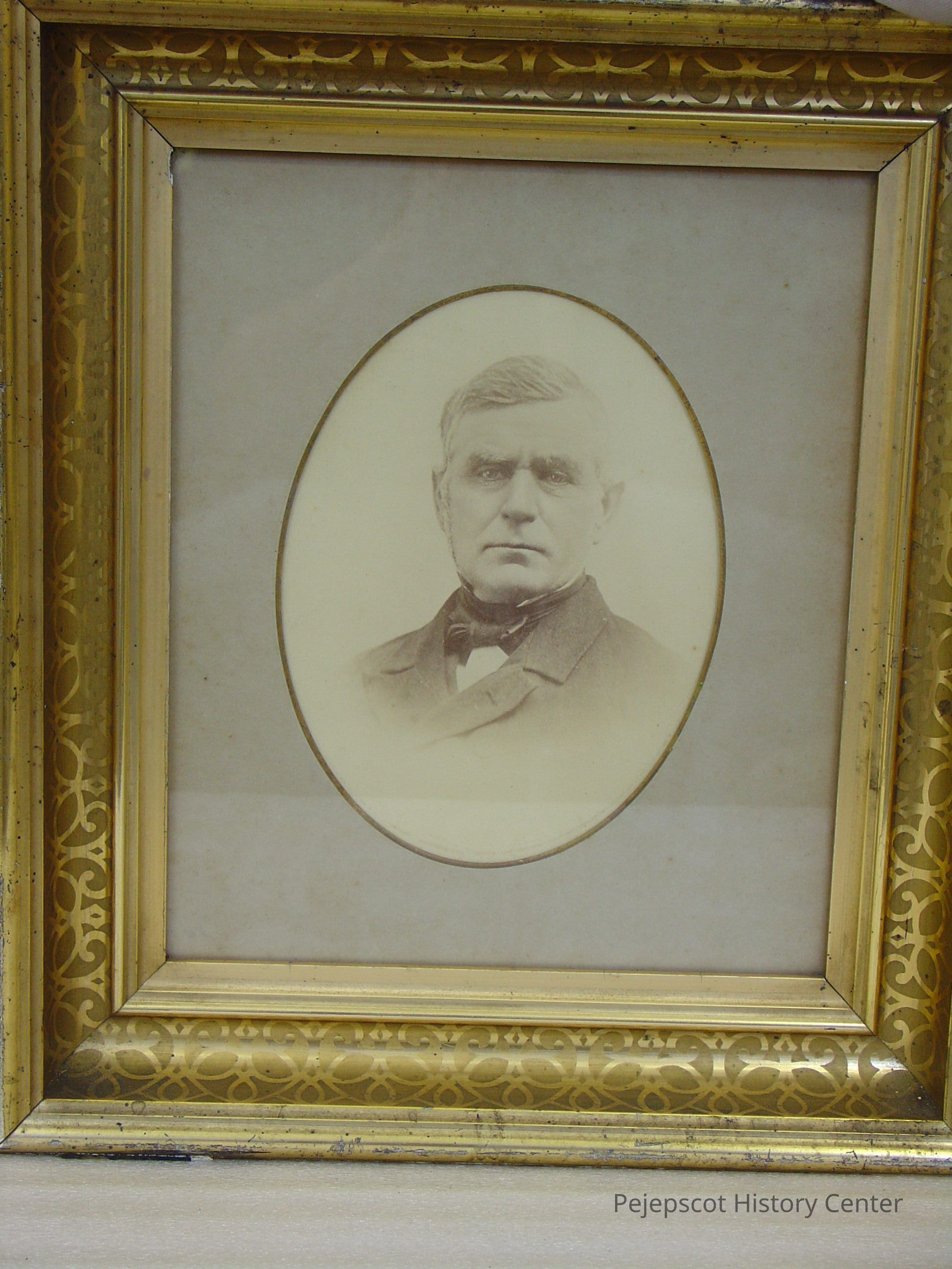 Matted, oval wood framed photo of Captain George Mustard (written in pencil on the back). The oval frame is gilt, molded plaster with a design--see photo in accession records. Overall size: 40.5 cm h x 35.75 cm w x 5.5 cm d. Not dated.