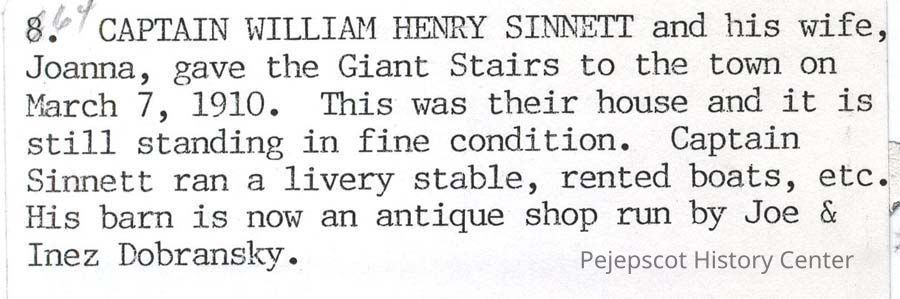A print copy of Captain William Henry Sinnett. He and his wife gave the Giant Stairs to the town. See back of photo for more info. UndatedCollection