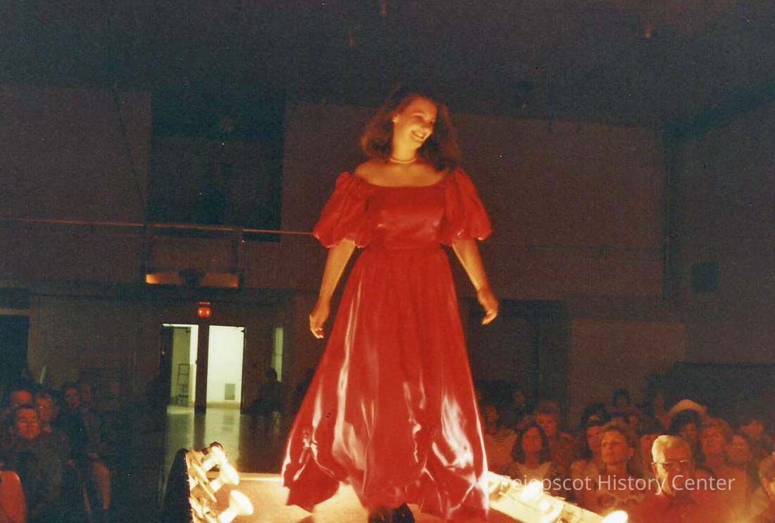 A color photograph of Cara Martin taking her walk down the ramp. Photographer's # 4-24 CYO sponsored