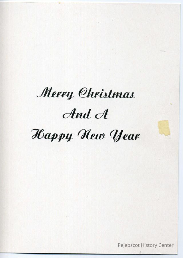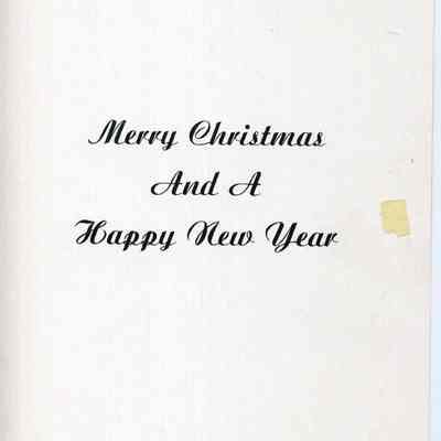 A Christmas card with a photo of the alter at St. John's Church decorated for Christmas. Inside the card is printed "Merry Christmas and a Happy New Year."