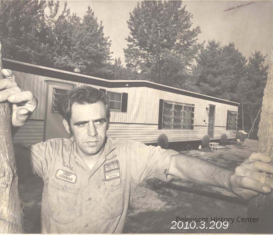 A B/W photograph of Carl Brawn whose mobile home is in violation of the new zoning ordinances. Photo published 9/18/1969. Undated