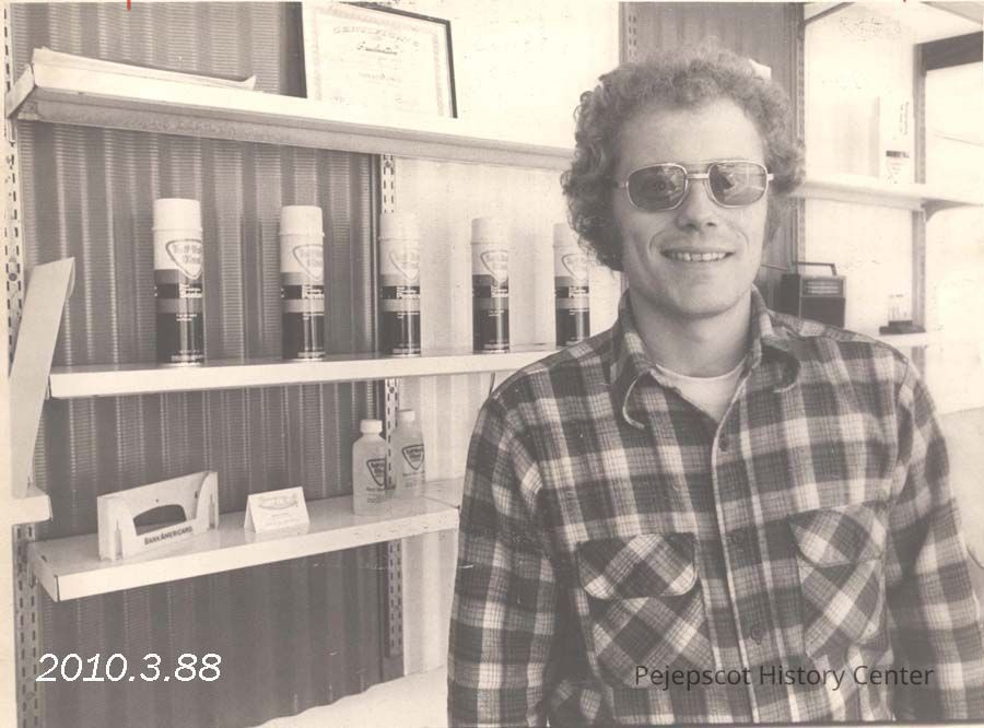 A B/W photograph of Carl Champine the new owner of Tuff-Kote Dinol Rustproofing at Cook's Corner. Photo published 1/17/1977. Undated