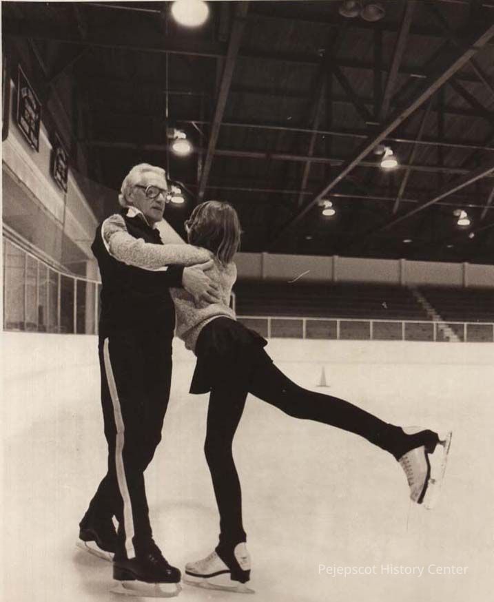 A B/W photographic view of Carl Walker skating instructor. This photo was published 3/14/1983.