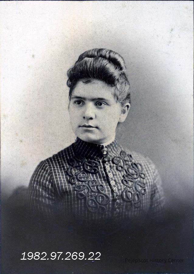 A B/W photograph of Carrie Russell Woodside, Alice Toothaker's mother. photo by A.O. Reed, Brunswick