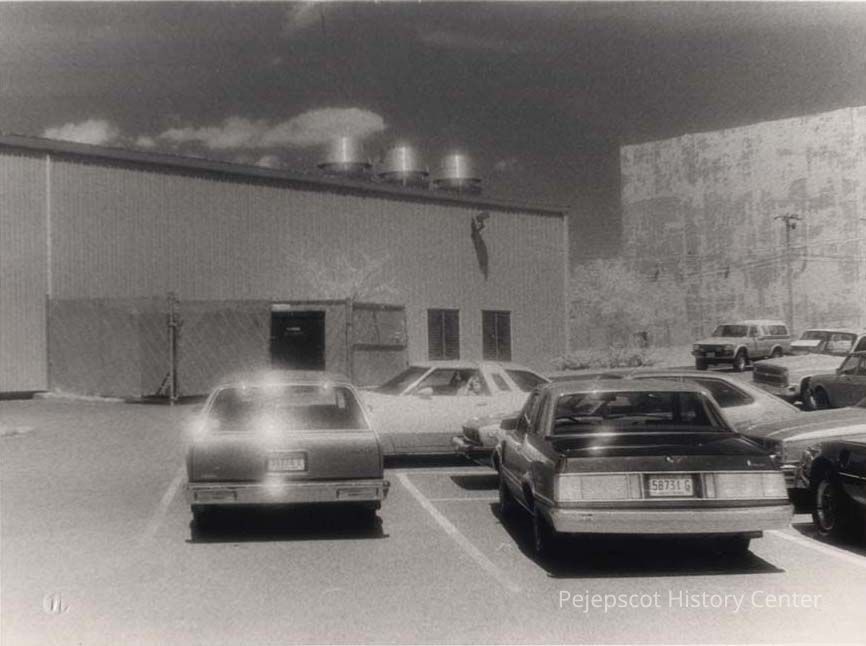 A B/W photograph of cars parked at the Base Annex, Topsham. Undated