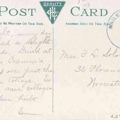 A bright, sunny day& we had a delightful ride. Dined at a Mrs. Cramm's. Walked over past the Tolman Cottage. So many new cottages have been built. E