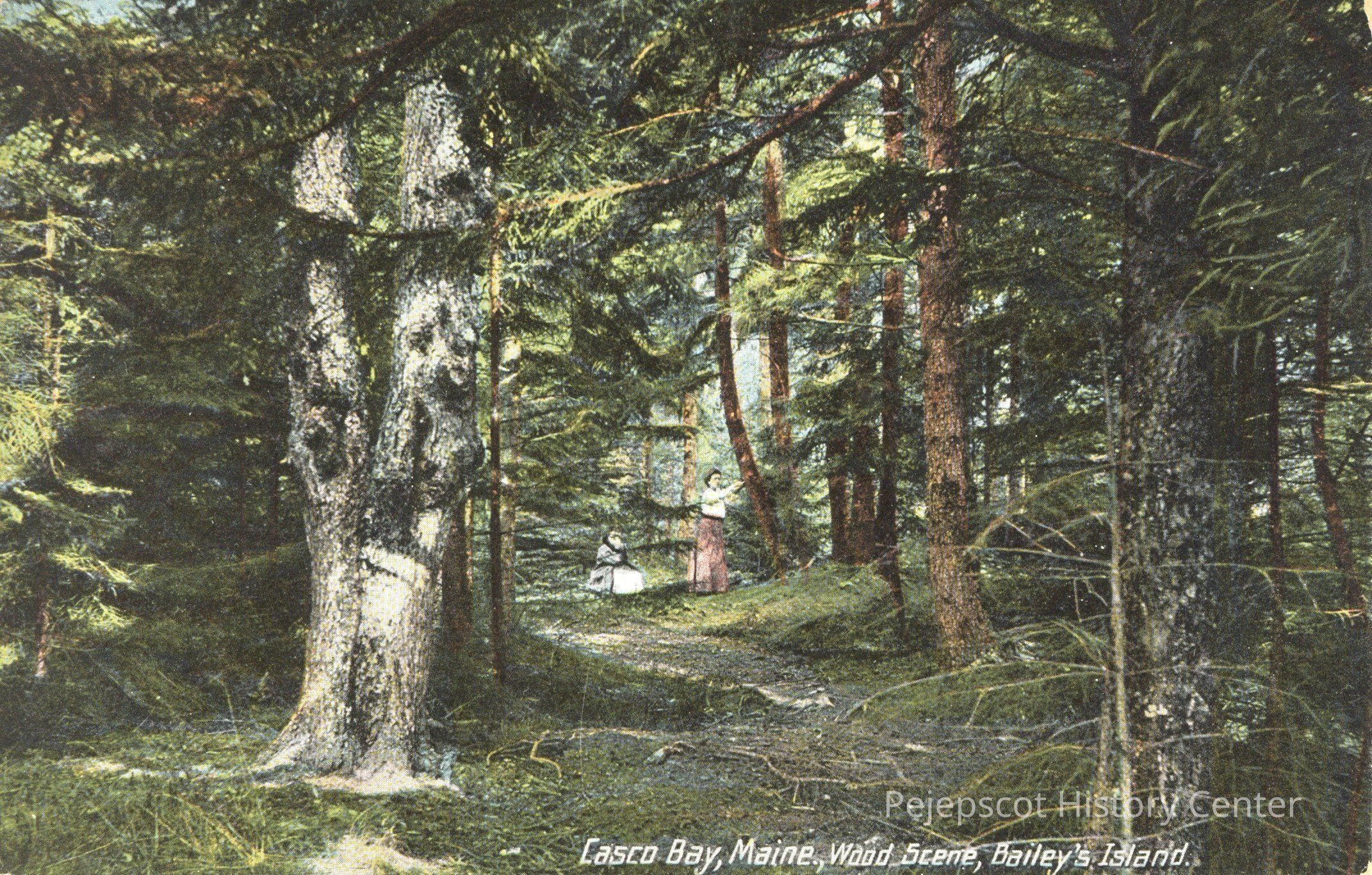 Color photo postcard of a wood scene on Bailey’s Island, in Casco Bay, Maine.Collection