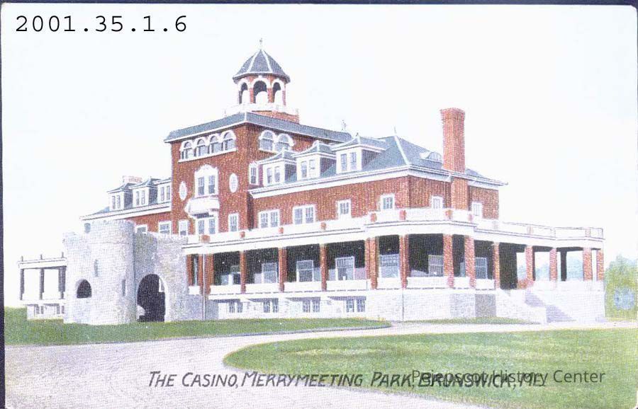 Colored postcard of the Casino at Merrymeeting Park, Brunswick, ME. No date.