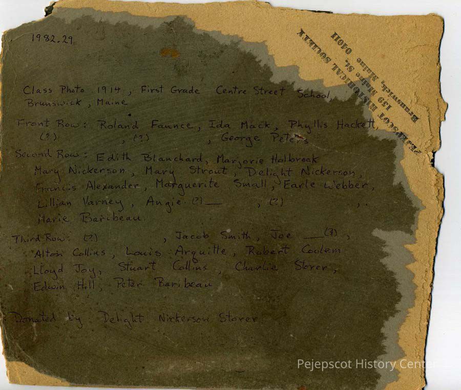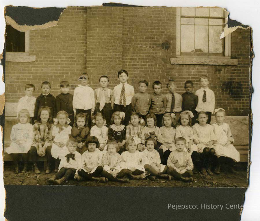 The African American boy standing second from right is Edwin Hill, son of William T. Hills, a porter at the rail station. The family had two daughters, Bessie and Elizabeth, and two sons, William Jr. and Edwin. William Jr. died in the summer of 1918 at 21 of pneumonia, days after registering for the draft. Edwin was the youngest of the four. He was the only one in the family born in Maine (in Brunswick in 1909).