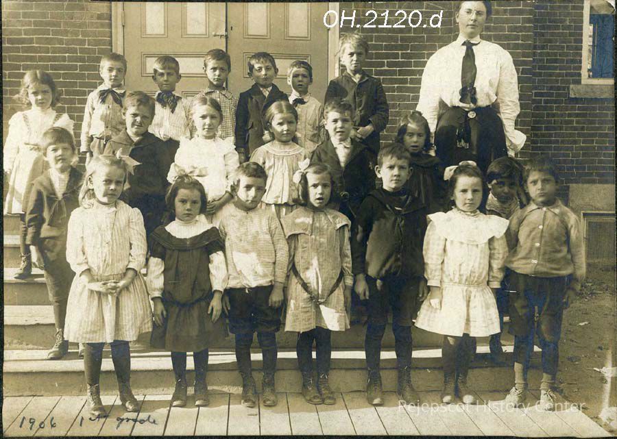 A B/W photograph of the first grade class at Center Street School, Brunswick, ME. Dated1906.
