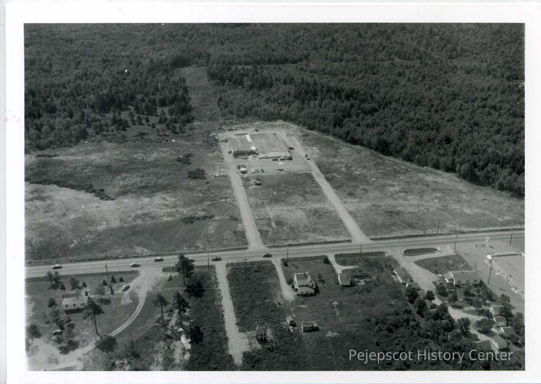 An aerial photo of Central Maine Power Company's building on Bath Road on August 13, 1956.