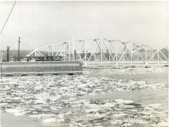 Central Maine Power Company Power Station and Frank J. Wood Bridge in 1936 flood