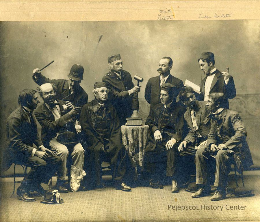B/W group photo of the Cercle Cremazie drama club founded by Father Rabel. The man at the far right standing is Ludger Ouellette. The fourth man seated is Alcide Letarte.