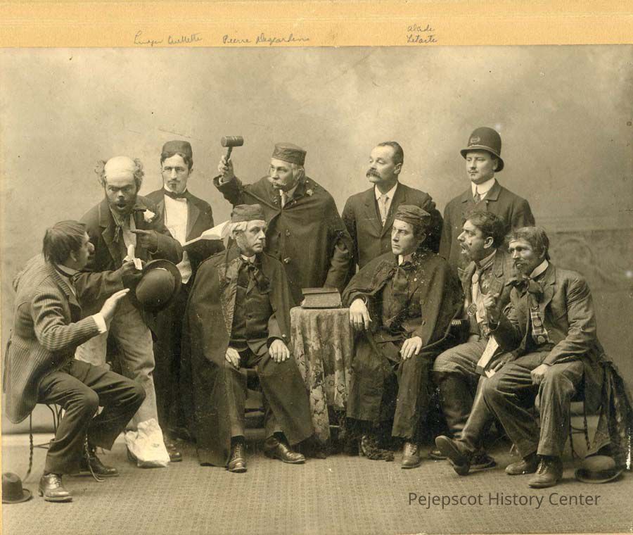B/W photo of drama group of Cercle Cremazie 1906 back row 2nd from left is Ludger Ouellette first row 3rd person is Alcide Letarte Duplicate of 1988.58.6