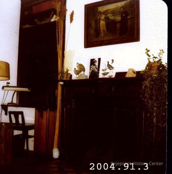 A colored photograph of the fireplace in the library of the Joshua L. Chamberlain House