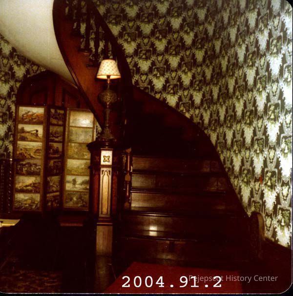 A colored photograph of the front hall of the Joshua L. Chamberlain House.