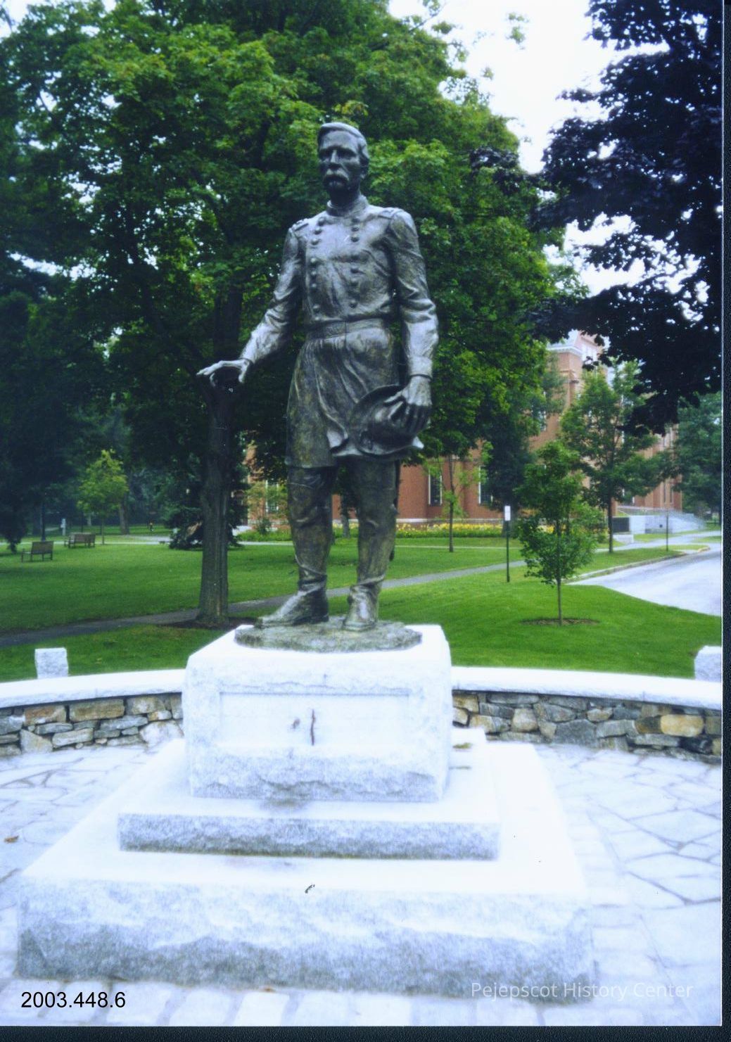 A color photograph of the Joshua L.Chamberlain statue in Brunswick, Maine, was taken in August 2003.