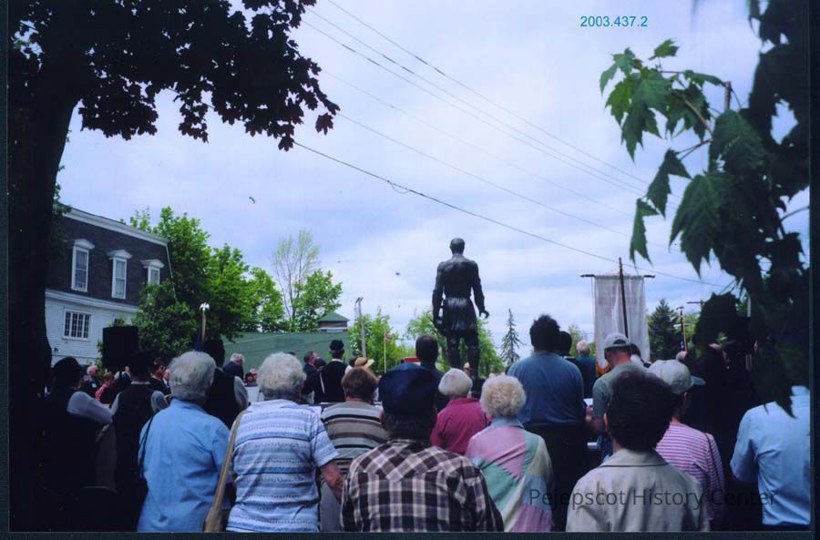 A color photograph was taken on 5/31/2003 of the dedication of Joshua L. Chamberlain statue in Brunswick, Maine.