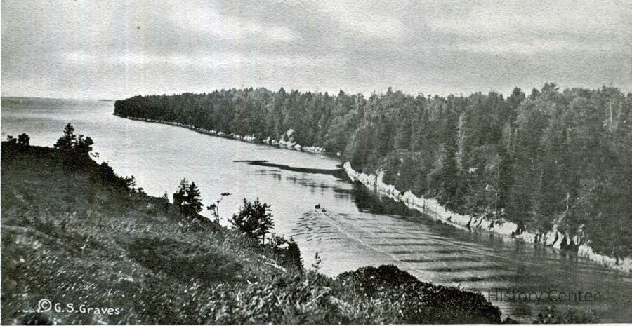 A B/W photo of the channel leading to the ocean after passing the Orr's Island Bridge.