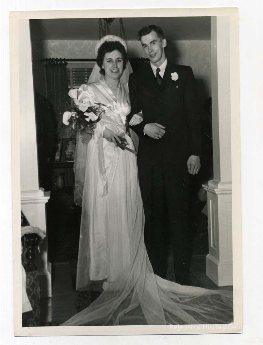 Louise Venise Charron and Fred J. Everett Lewis just after their St. John's church wedding. 06/01/1946
