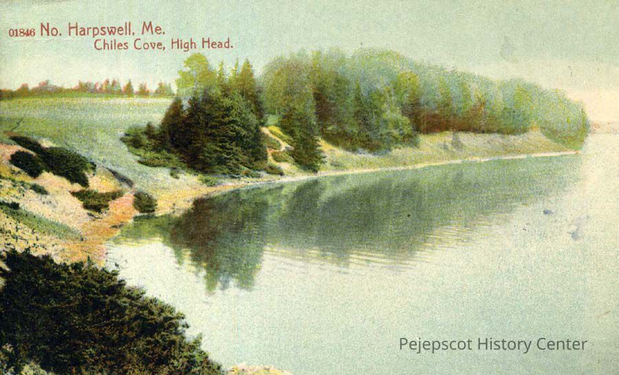 A colored picture postcard of Chiles Cove, High Head, North Harpswell, Maine. Not dated.Collection