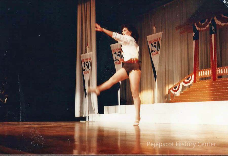 A color photograph of Chressie Gagne, contestant # 4, doing a dance routine for talent.