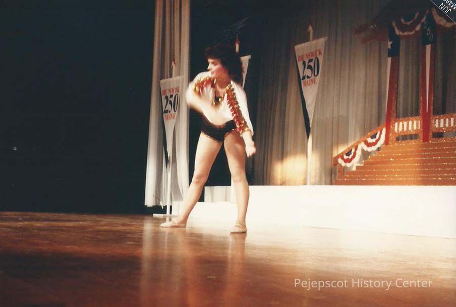 A color photograph of Chressie Gagne dancing to "Footloose".