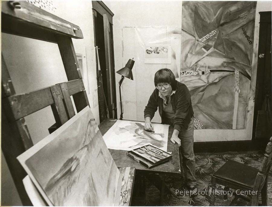 An undated black and white photo of Chris Carignan, an art teacher at Mt. Ararat High School in Topsham, Maine. It is similar to 2003.546.3.99. .