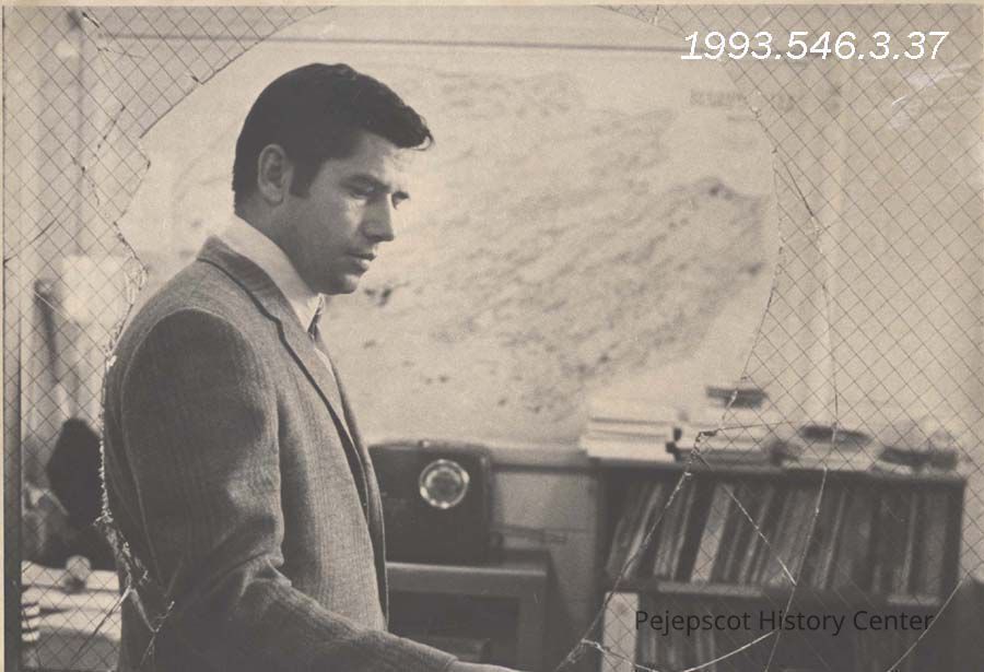 A black and white photo of Harpswell Islands School Principal Clarence Fickett accompanied an article in The Bath-Brunswick Times Record, Maine, about a robbery at the school over the previous weekend in which two typewriters, a calculator, an overhead projector, a television, and an intercom were stolen. The story and photo were published on 11/25/1970.Collection