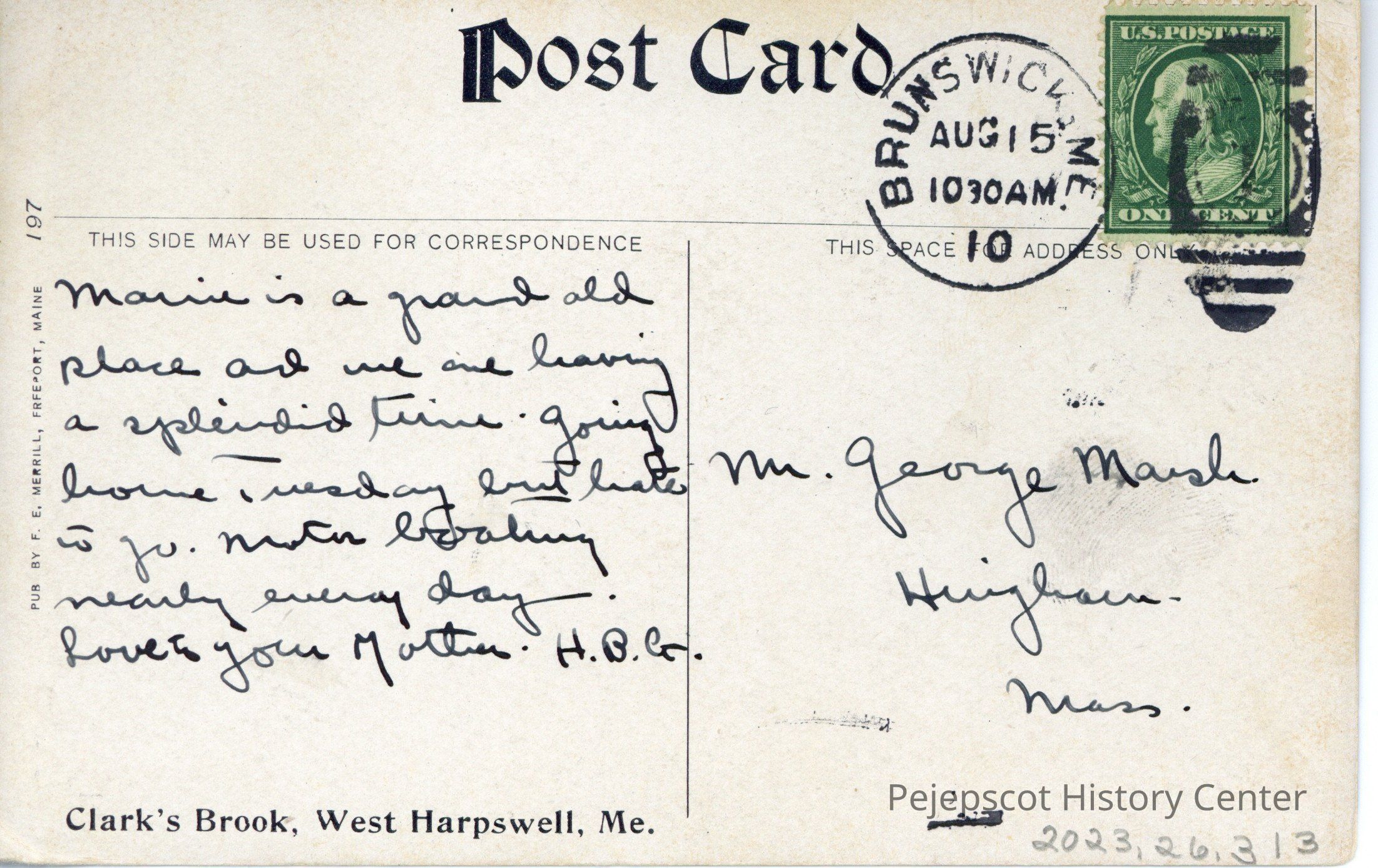 Black and white photo postcard of Clark's Brook, West Harpswell, Me.Collection
