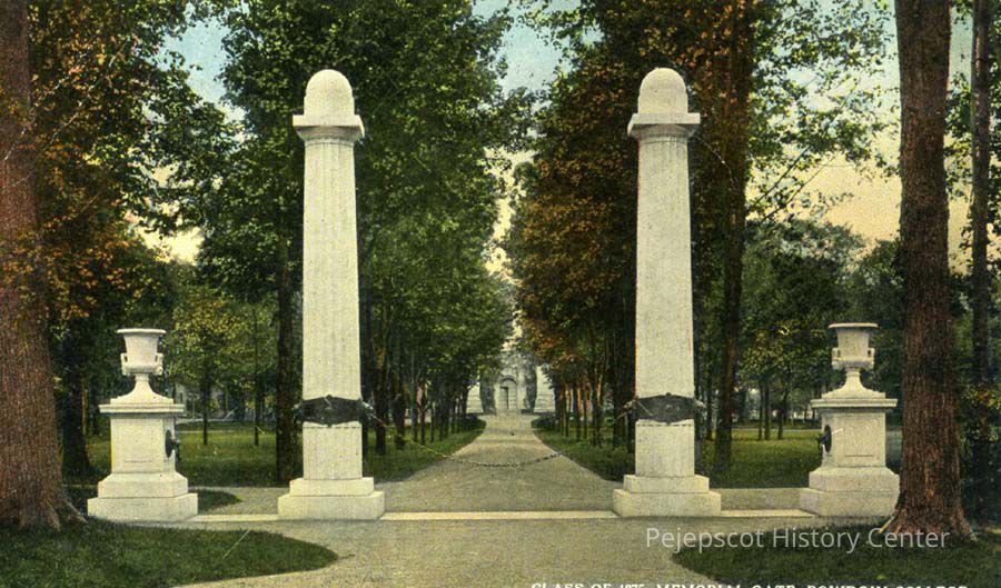 color postcard of Class of 1875 Memorial Gate, Bowdoin College, Brunswick, ME. No date.Lexicon