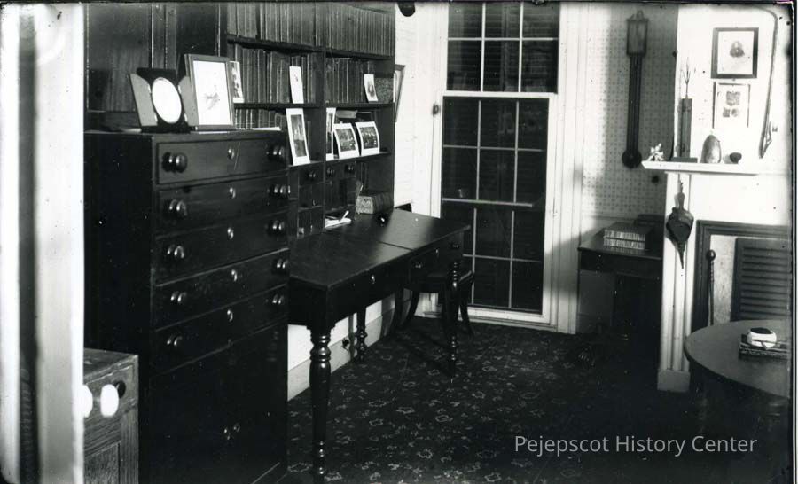 Black and white photograph of Cleaveland House, 75 Federal Street, Brunswick, Maine; Showing "Cleaveland's Study", NE room, first floor. Photo by Horace Chandler.Collection