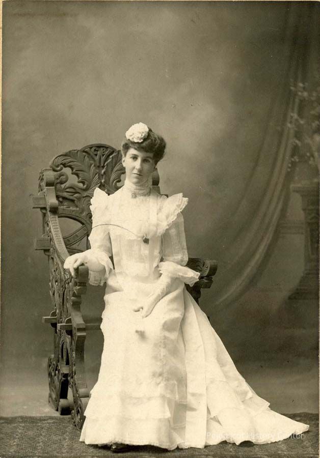 An undated B/W portrait of Grace Clifford in her wedding dress. See 1974.35.17 - the actual wedding dress.