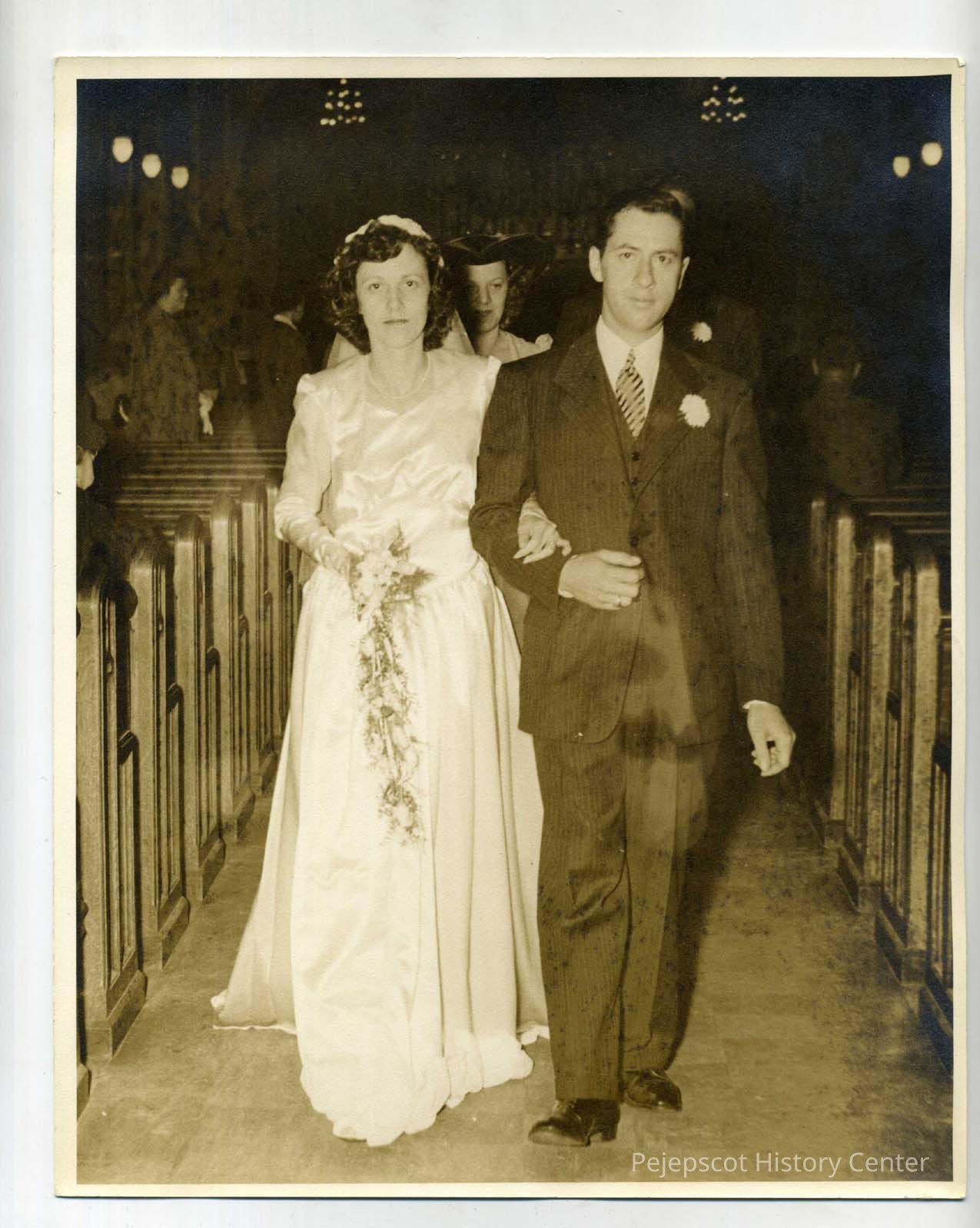 Cyrienne Cloutier and Laurent Laurier Elzear "Charlie" Belanger at their St John's Church wedding. Unverified date: 09/06/1943
