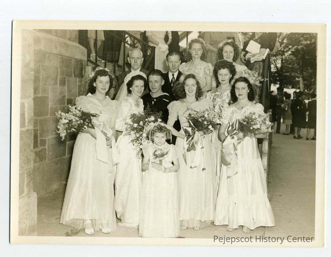Wedding party at the Adrienne Elise Cloutier and Herbert George Closson wedding at St. John's church. 08/18/1945