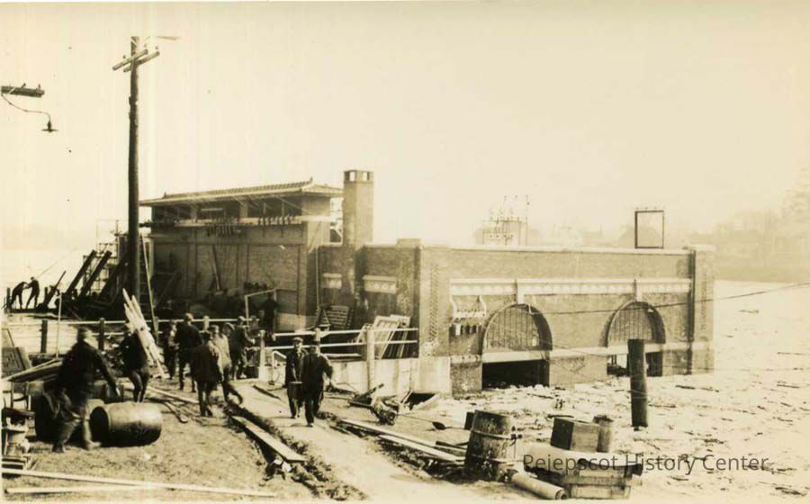 A B/W photograph of the Central Maine Power Co. generating station, Flood 1936. Undated