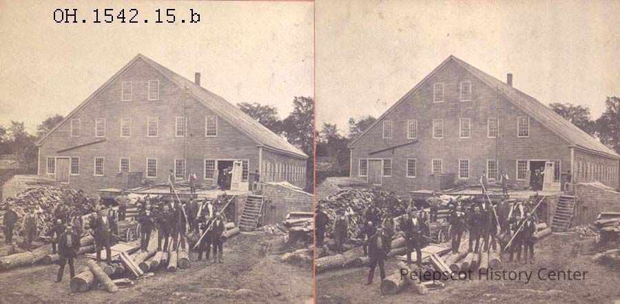 A B/W stereo view of Colby Saw Mill, Brunswick, ME. Undated