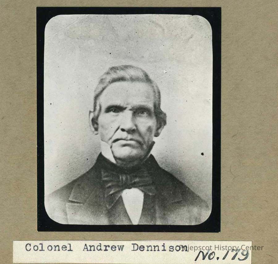 A black and white portrait of Colonel Andrew Dennison. The portrait is from the shoulder up and shows Dennison in civilian clothes. Undated