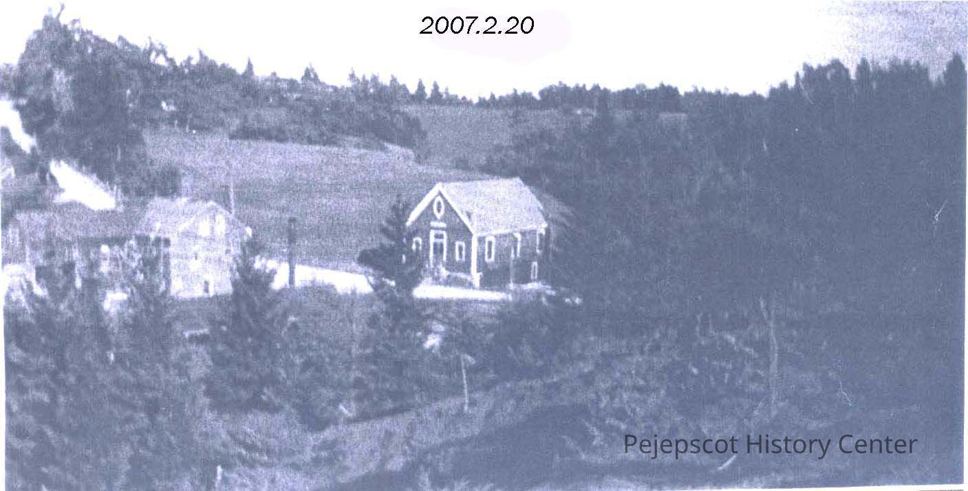 A B/W photograph of the completed Bunganuc Hall which is on the right. The Kincaid home is on the left. Undated