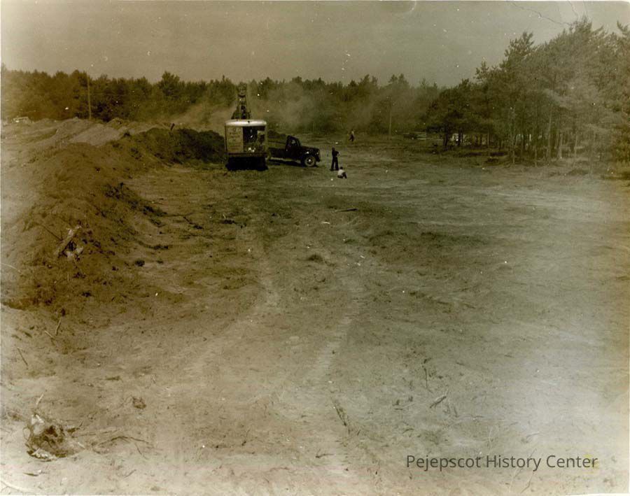 A B/W photograph of the construction of one of the runways at Brunswick Airport which became BNAS. Undated