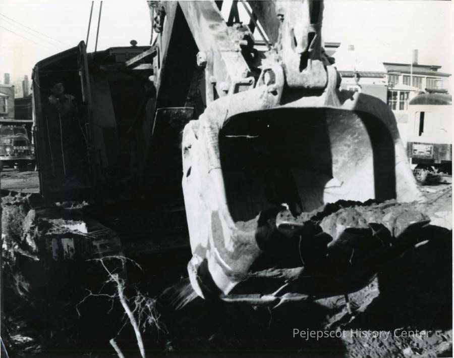 B/W photo of a power shovel at work on the new route 1. No date.
