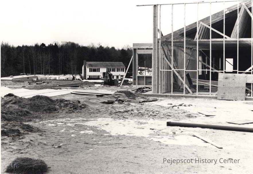 A B/W photograph of the construction of the United Methodist Church on Church Road. Undated