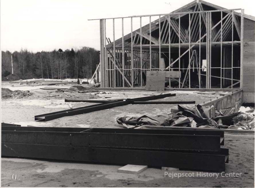A B/W photograph of the construction of the United Methodist Church on Church Road. Undated